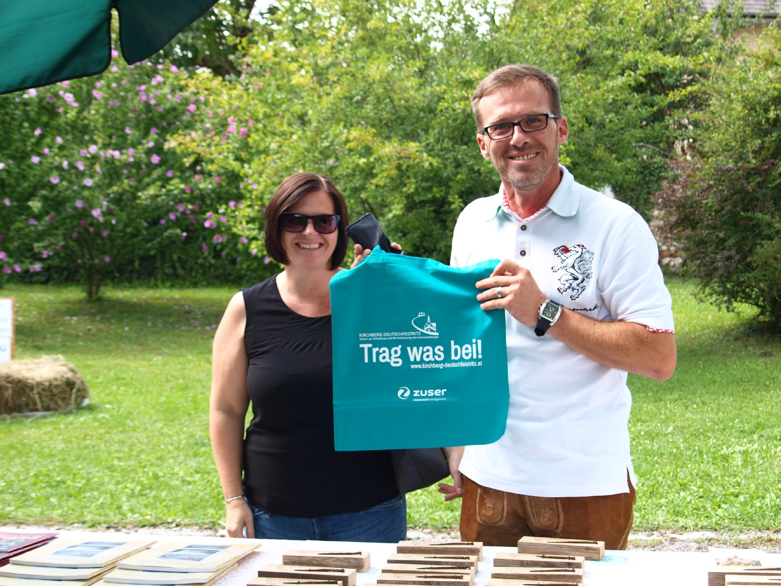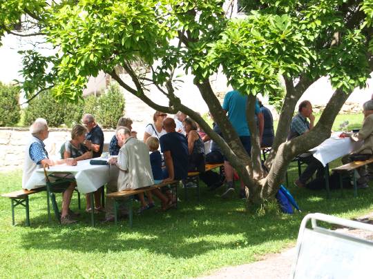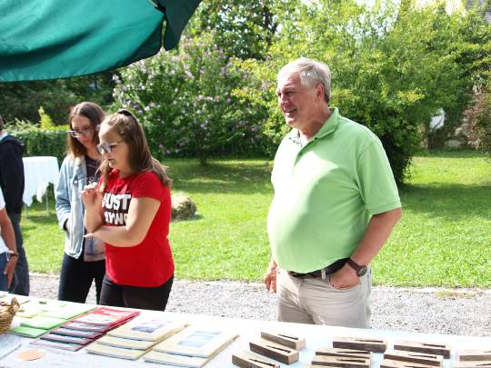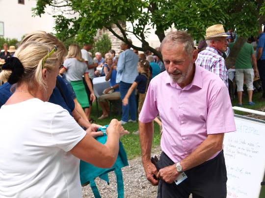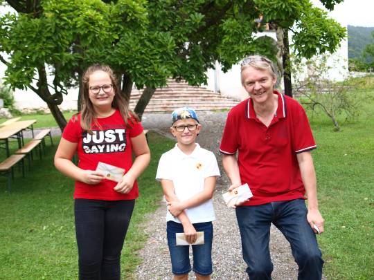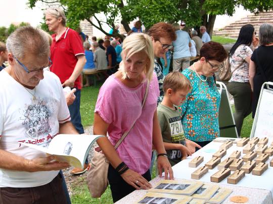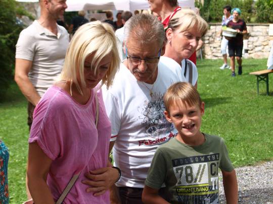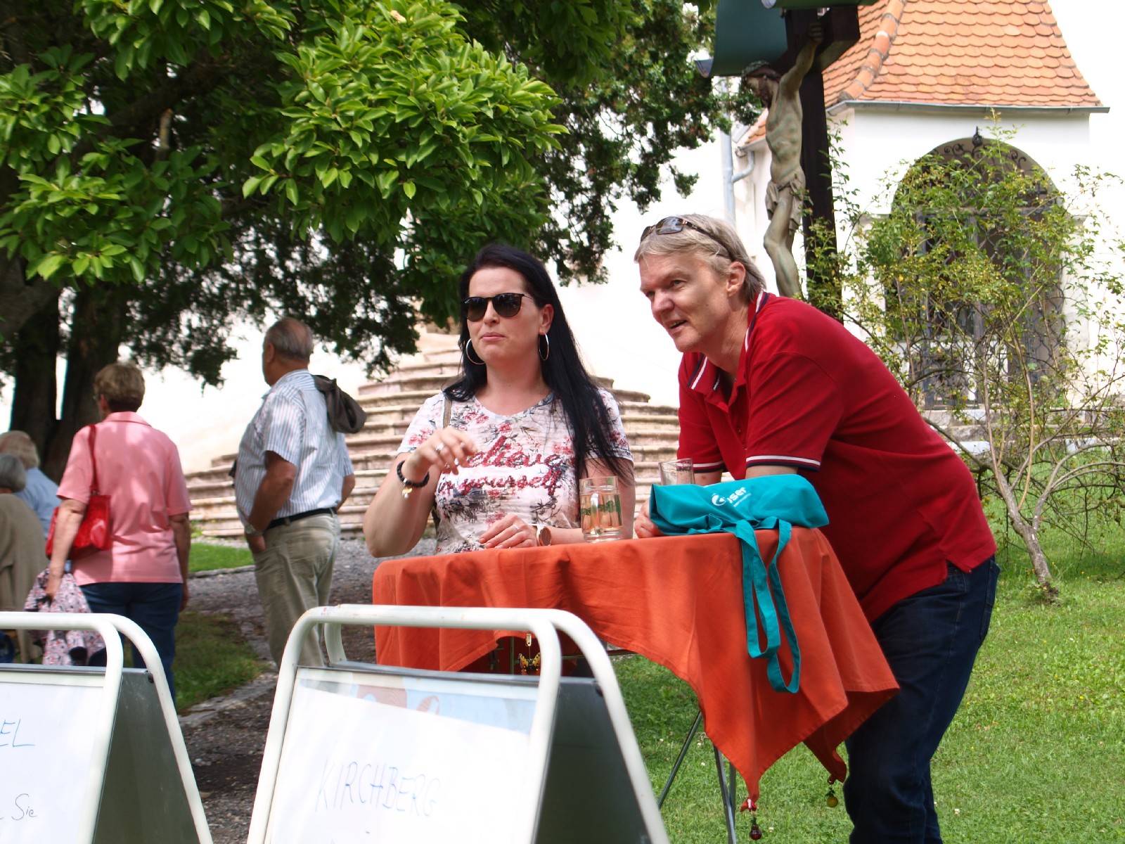 Der Kirchberg, Wahrzeichen der Gemeinde Deutschfeistritz, rückte wieder sehr bewusst in das Gedächtnis der Bevölkerung und neben dem Besteigen des Berges, „per pedes“ oder per Shuttle-Bus, wurde nicht nur das sportliche Gen, sondern auch das „Schätzungsgen“ strapaziert – denn ohne Vorwarnung sollten die Besucher/innen kundtun, wie viele Stufen vom Peter-Tunner-Platz bis zur Eingangstüre der Pfarrkirche zu bewältigen seien, um einen von der Gemeinde Deutschfeistritz gesponserten Preise ergattern zu können. Ja – und die Hauptpreise gingen an die Jugend von Deutschfeistritz – ein Omen – das nicht besser sein könnte – denn die Jugend ist aktiv, sie engagiert sich, Kompliment an die Minis (Ministrant/innen der Pfarre), die speziell für das Fest tönerne Haussegen angefertigt haben!