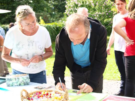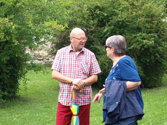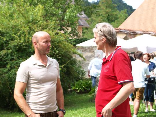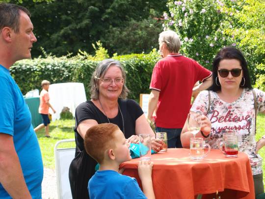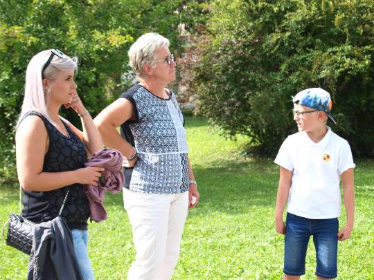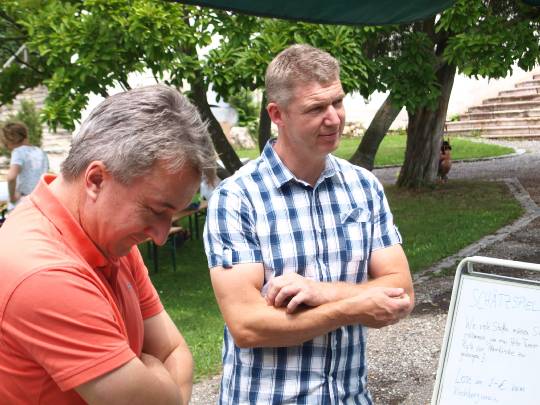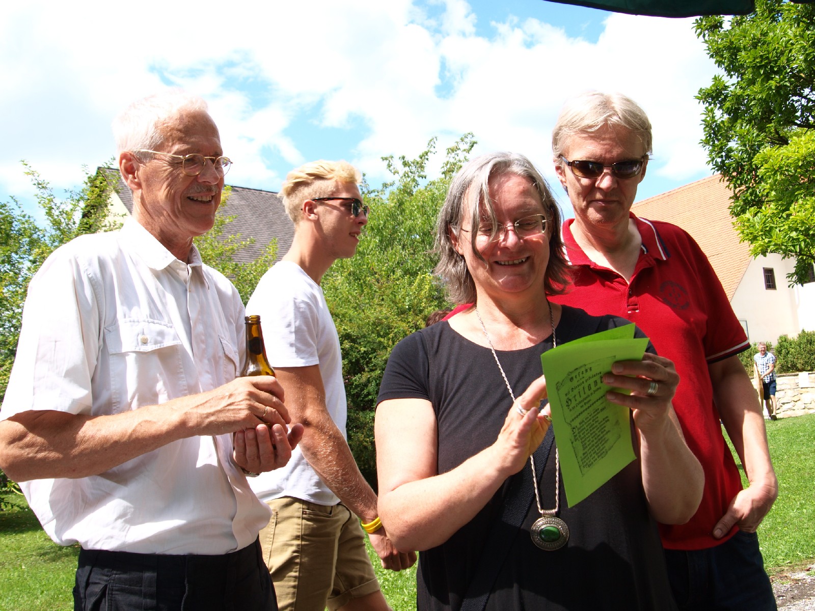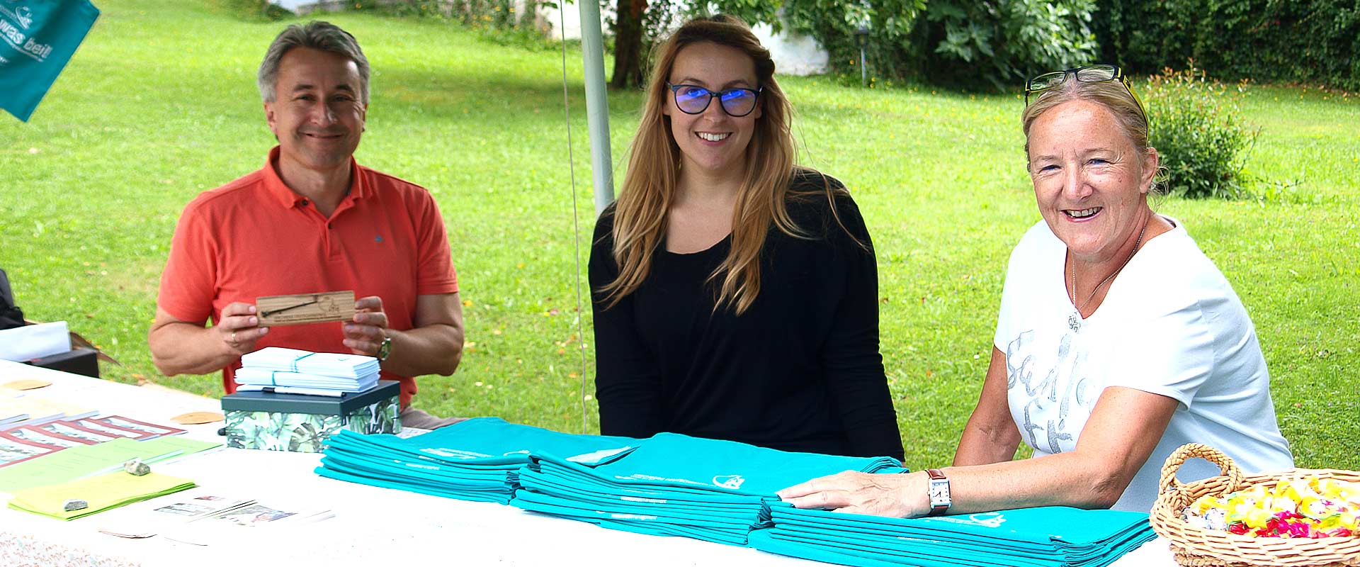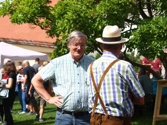 Der Kirchberg, Wahrzeichen der Gemeinde Deutschfeistritz, rückte wieder sehr bewusst in das Gedächtnis der Bevölkerung und neben dem Besteigen des Berges, „per pedes“ oder per Shuttle-Bus, wurde nicht nur das sportliche Gen, sondern auch das „Schätzungsgen“ strapaziert – denn ohne Vorwarnung sollten die Besucher/innen kundtun, wie viele Stufen vom Peter-Tunner-Platz bis zur Eingangstüre der Pfarrkirche zu bewältigen seien, um einen von der Gemeinde Deutschfeistritz gesponserten Preise ergattern zu können. Ja – und die Hauptpreise gingen an die Jugend von Deutschfeistritz – ein Omen – das nicht besser sein könnte – denn die Jugend ist aktiv, sie engagiert sich, Kompliment an die Minis (Ministrant/innen der Pfarre), die speziell für das Fest tönerne Haussegen angefertigt haben!