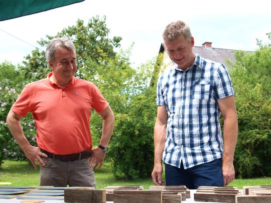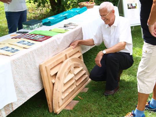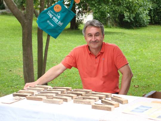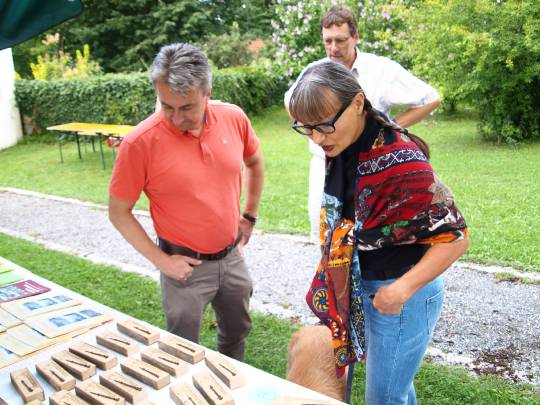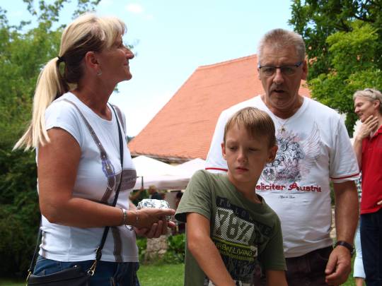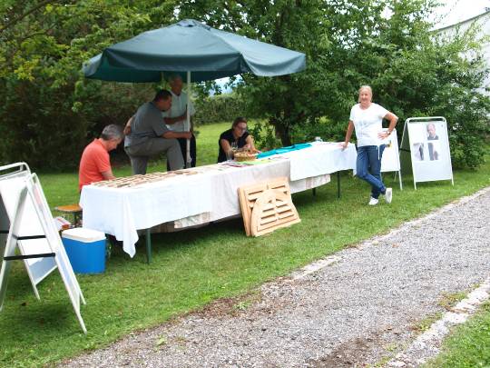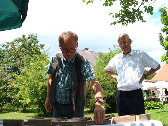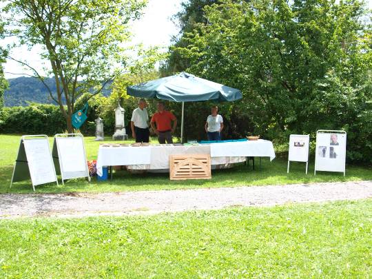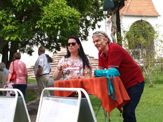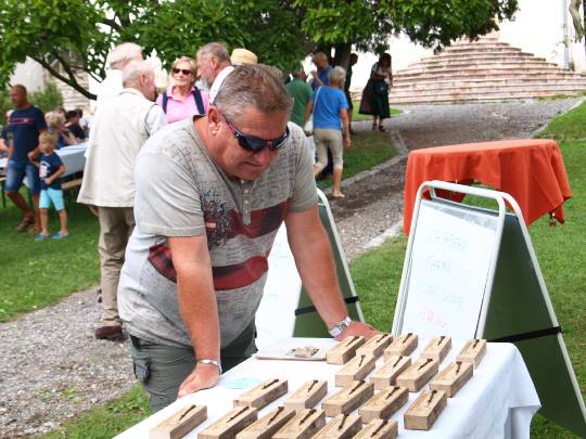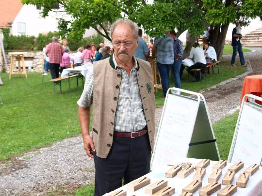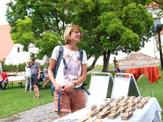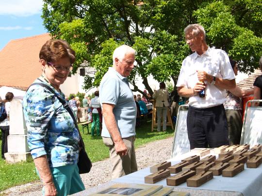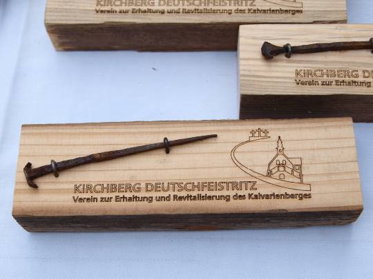 Unser Stand hatte drei Attraktionen zu bieten: Das oben genannte Schätzspiel und originelle „Bausteine“, gefertigt aus dem alten Dachstuhl der Ölbergkapelle mit originalen Nägeln, die aus der Entstehungszeit der Kapelle im 17. Jahrhundert stammen und von Familie Pöllabauer und Herrn Franz Mühlbacher hergestellt worden sind. Sie waren der Verkaufsschlager und wir bedanken uns für die unbezahlbare Unterstützung, dank derer wir auch positiv für weitere Vorhaben in die Zukunft sehen können. Und wir konnten vielen Interessierten die Informationen weitergeben, dass der Kalvarienberg Deutschfeistritz von Bürger/innen der Gemeinde vor einigen Jahrhunderten finanziert worden ist und dass die Gedenkstätten von der Gemeinde Deutschfeistritz seit den Gründungsjahren betreut und finanziert werden und damit ein Gemeingut der Gemeinde sind.