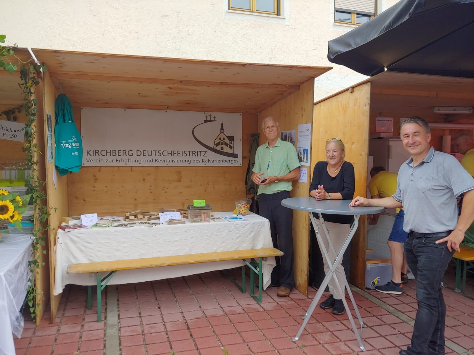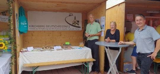 Der Kirchbergverein war mit einem Informationsstand vertreten und sorgte neben den sommerlichen Temperaturen auch für erhitzte Köpfe. Es wurde nämlich für ein Nenngeld von € 2.-- das „Kirchbergwissen“ getestet und es konnten Gemeindegutscheine gewonnen werden. Viele interessante Gespräche fanden am „Runden Tisch“ vor dem Stand statt und es konnten wieder einige der wunderbaren Bausteine von Franz Mühlbacher verkauft werden.